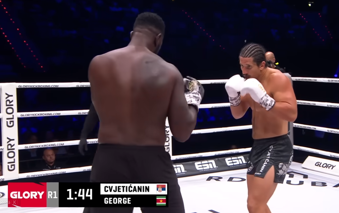 The smart Serbian beat the giant from Suriname easily over 3 rounds, scoring a unanimous decision win. He managed to control the giant with relentless pressure, never letting Colin George breath a second, using against him tools like hooks, jabs, knees and low kicks.